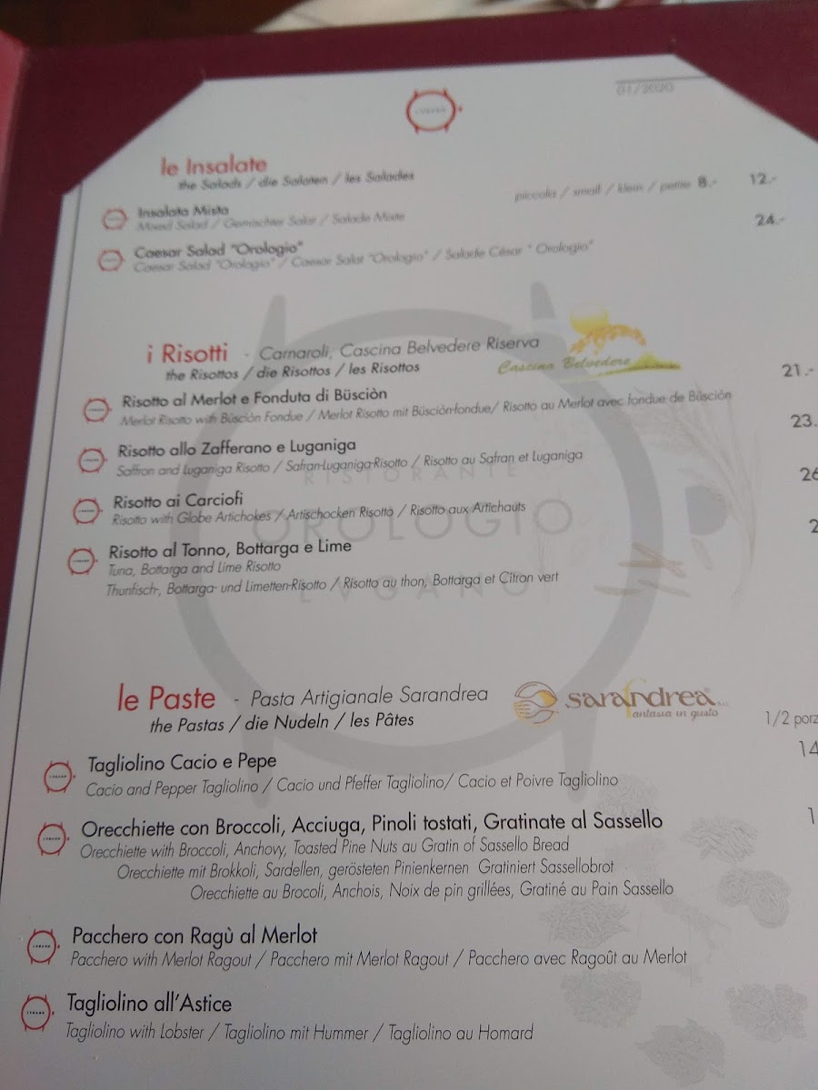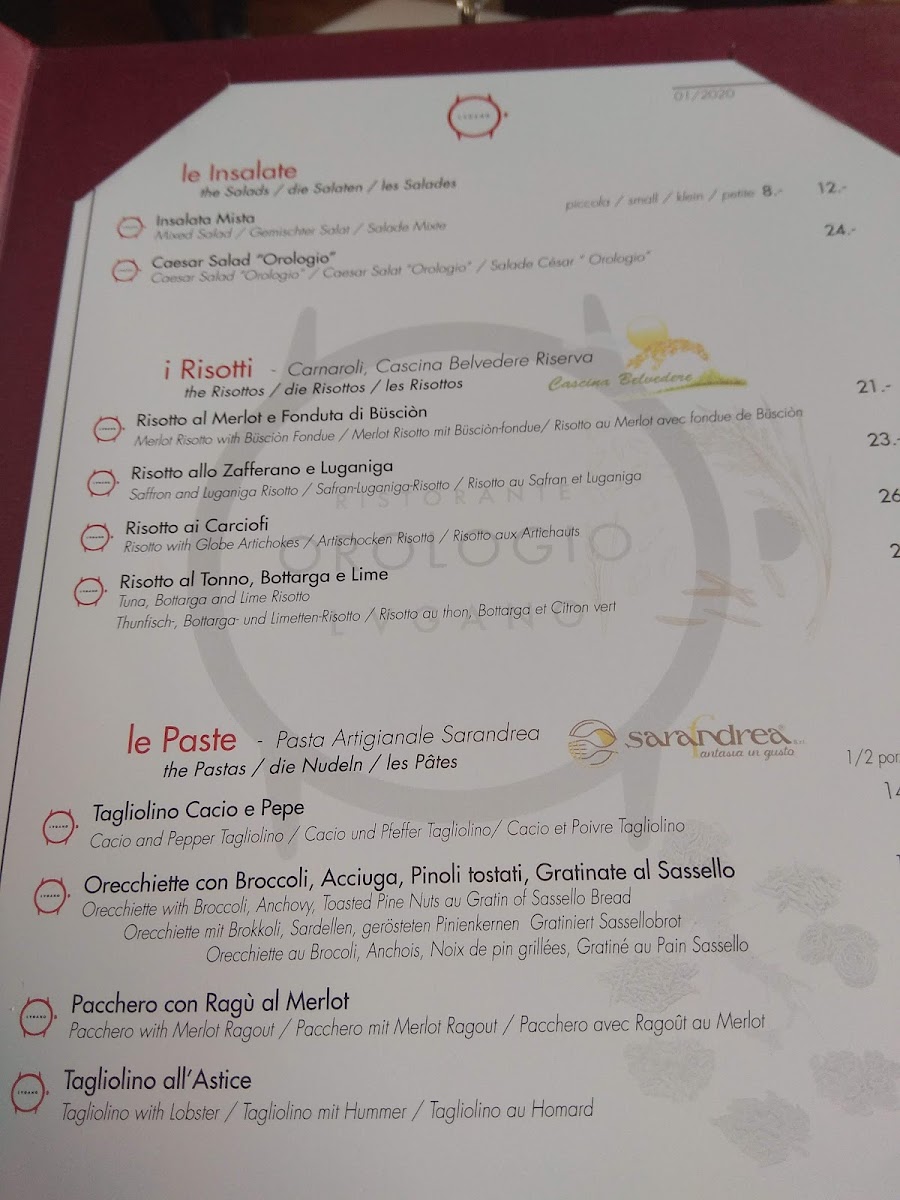 Ristorante Orologio in Lugano offers a delightful array of traditional and inventive dishes, each carefully crafted to satisfy diverse tastes. Among the standout options, Brasato Di Manzo Con Patate showcases tender braised beef paired perfectly with hearty potatoes, making for a rich and comforting dish. The Cordon Bleu Con Patatine Fritte delivers a crispy, golden exterior with a juicy, flavorful filling, complemented by crispy fries. For pasta lovers, Pappardelle Al Ragù Di Cervo offers wide ribbons of pasta drenched in a savory venison ragù, blending depth and sophistication in every bite.